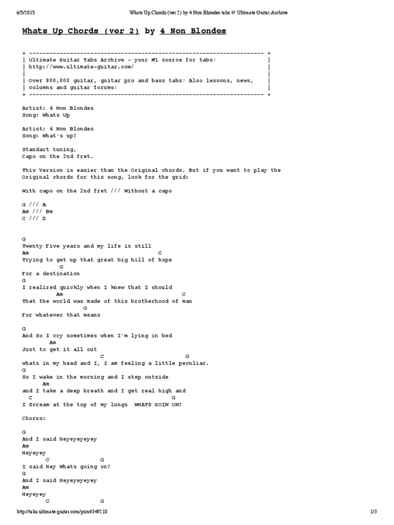 Whats Up Chords Ver 2 By 4 Non Blondes Tabs Ultimate Guitar
