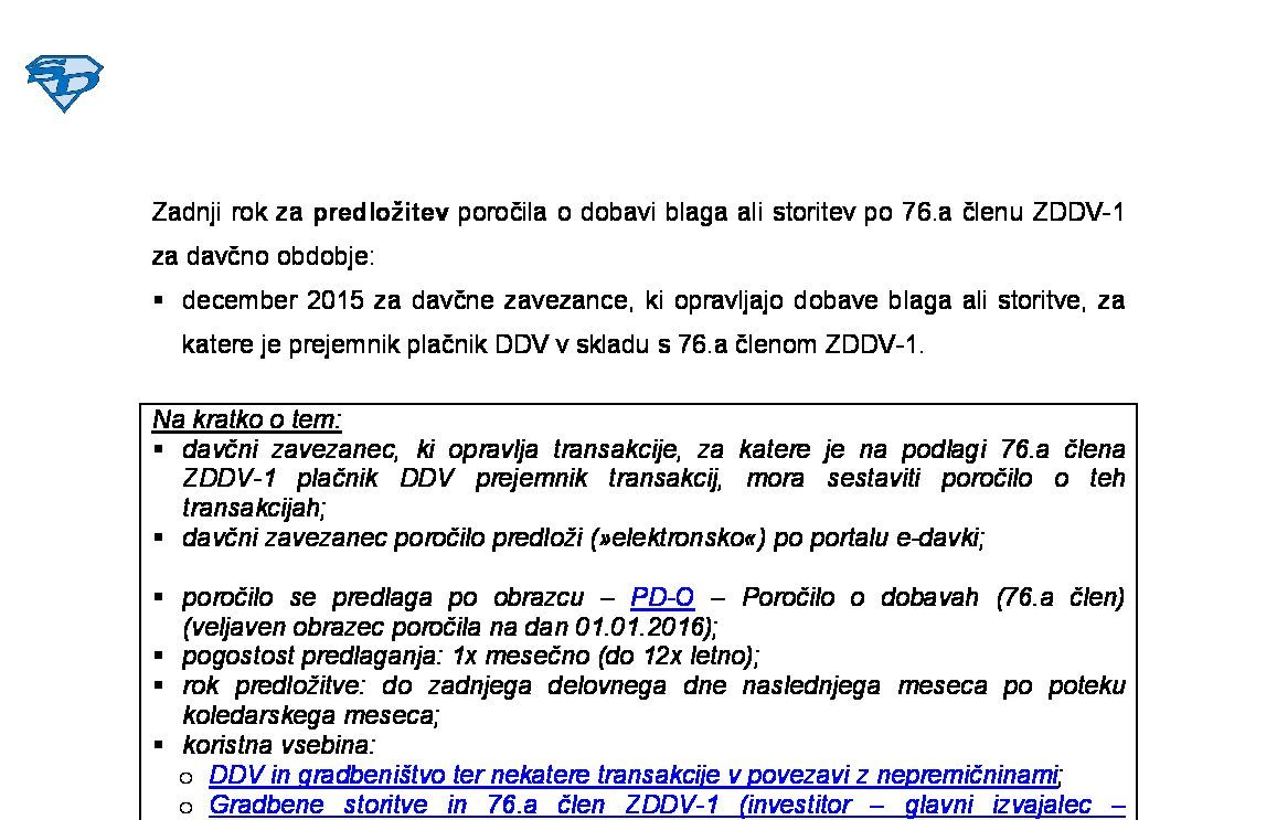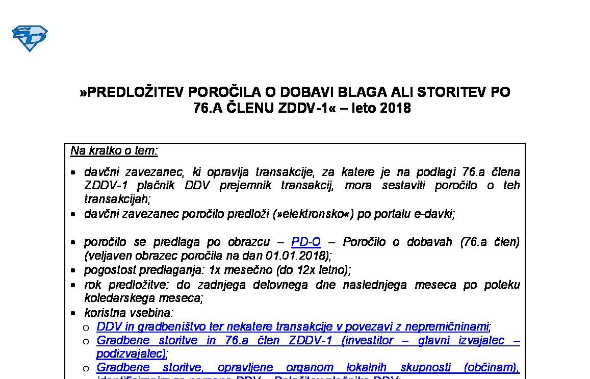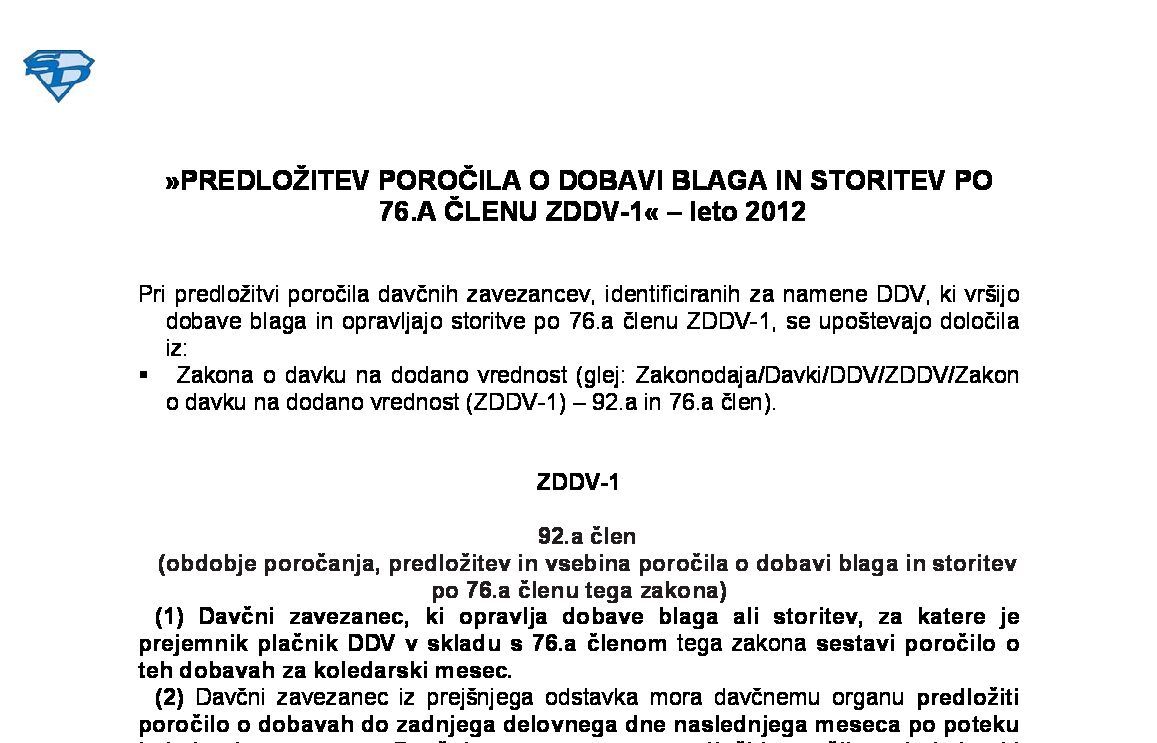 Predlozitev Porocila O Dobavi Blaga Ali Storitev Po 76 A Clenu