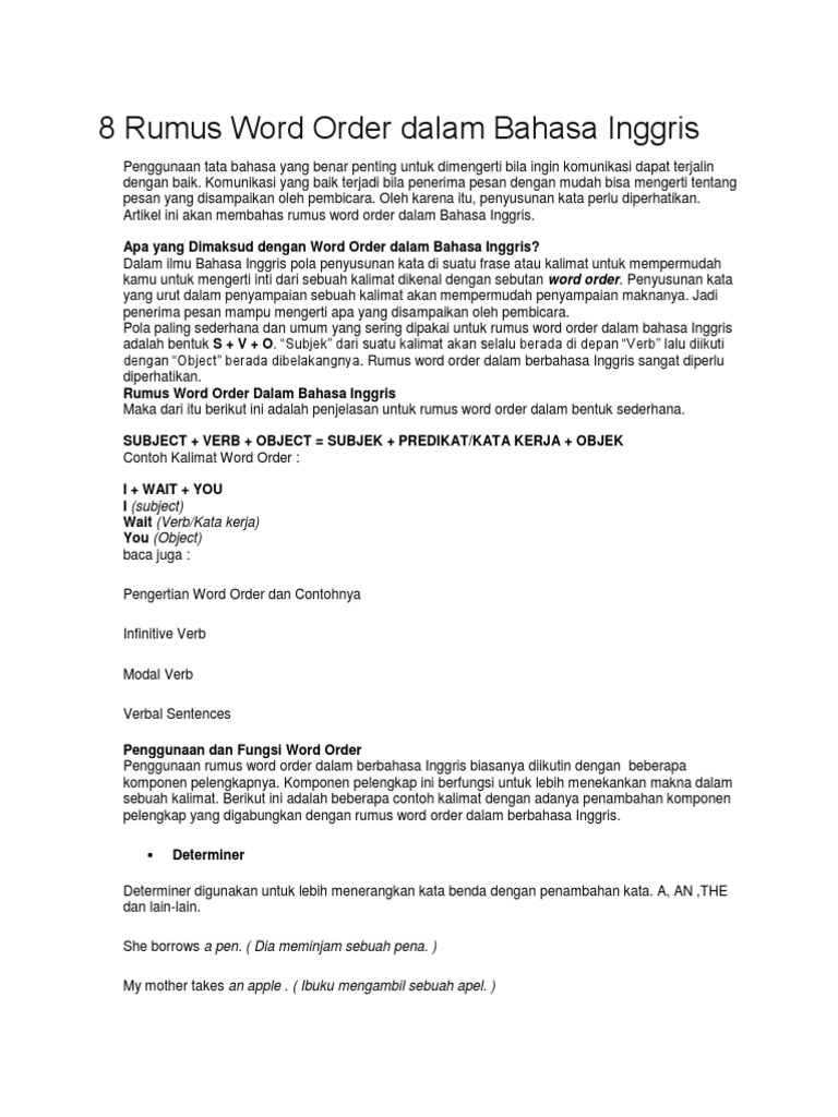 8 Rumus Word Order Dalam Bahasa Inggris