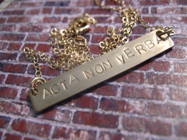 Hand Stamped Necklace With Latin Quote Acta Non Verba By Dmcharmco