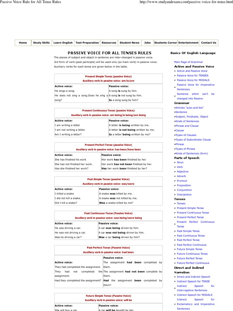 Passive Voice Rule For All Tense Rules Pdf Grammatical Tense Verb