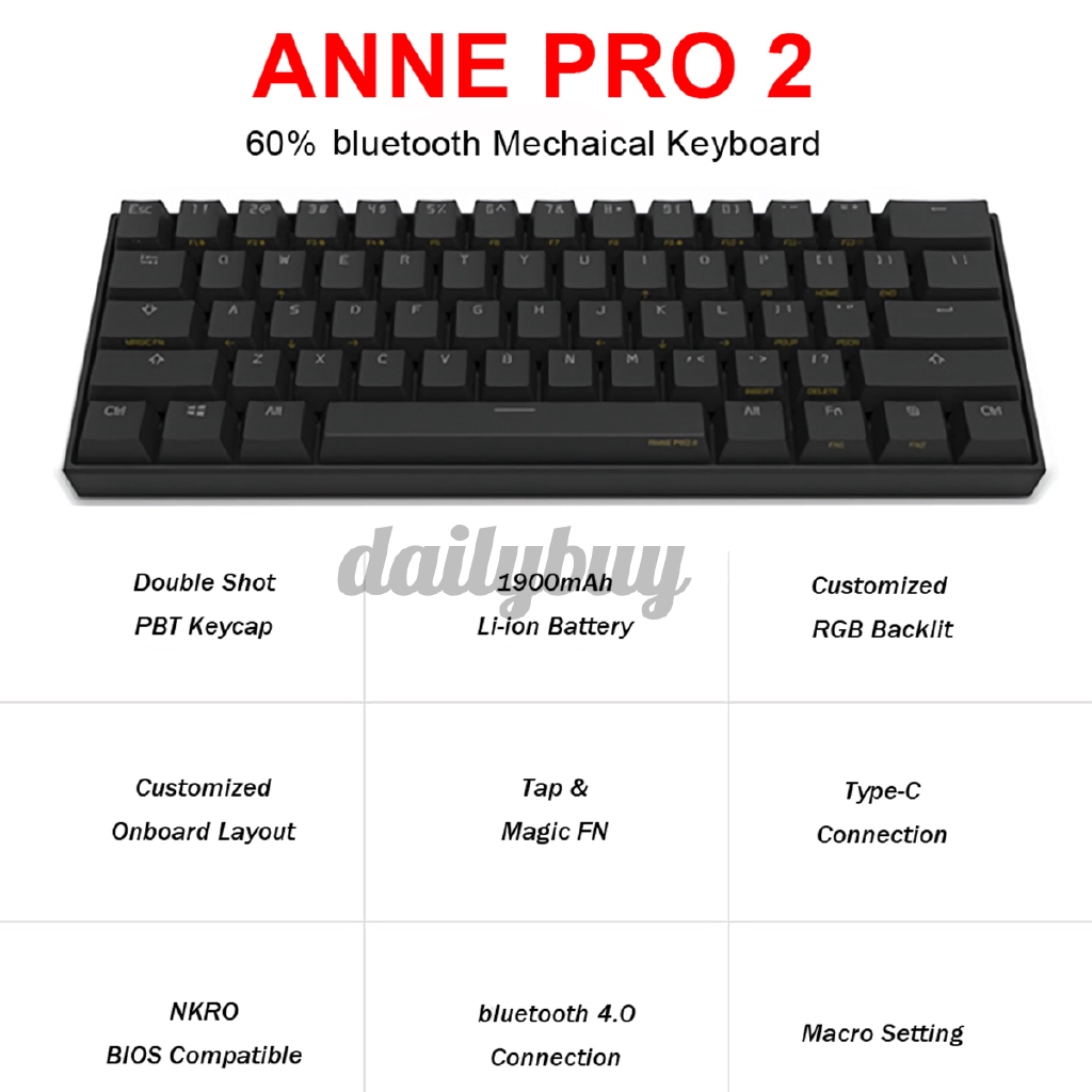 Jual Anne Pro 2 Wireless Bluetooth Mechanical Keyboard Rgb Type C