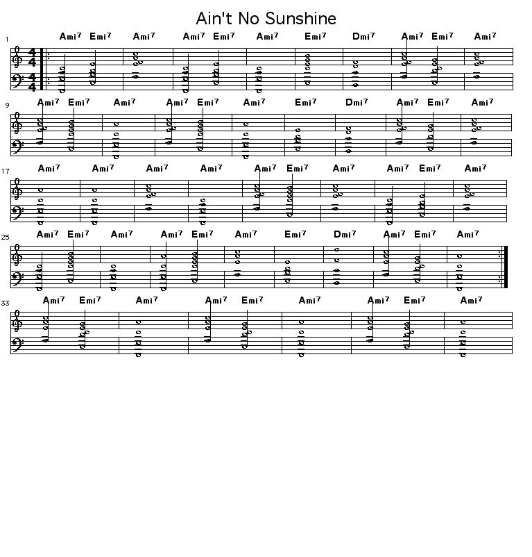 Ain T No Sunshine Sheet Music Bill Withers Guitar Chords