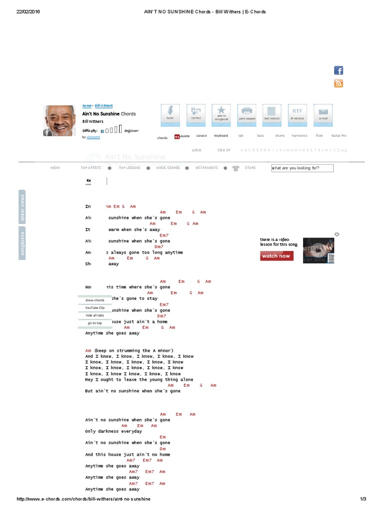 Ain T No Sunshine Chords Bill Withers E Chords Leisure