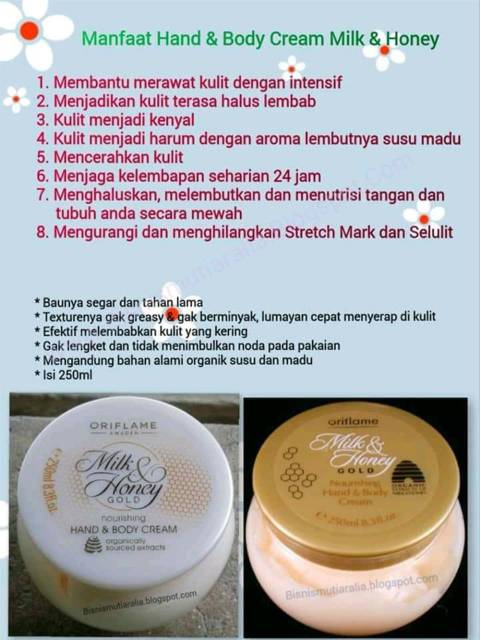 Hand And Body Cream Milk Honey Oriflame Kesehatan Kecantikan