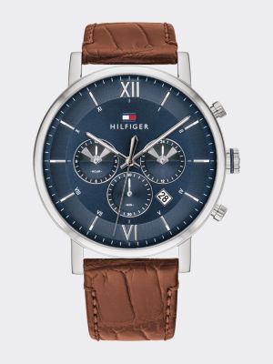 Crocodile Effect Leather Strap Watch Brown Tommy Hilfiger