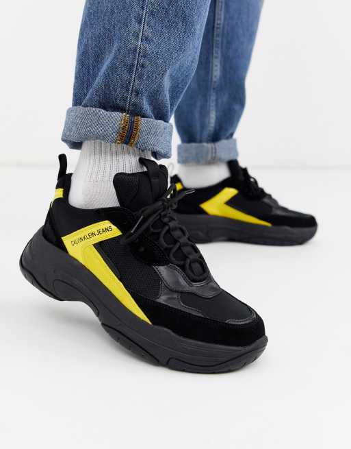 Calvin Klein Marvin Chunky Sneakers In Black And Yellow Asos