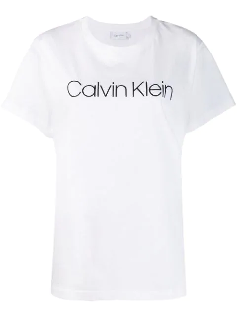 Calvin Klein Logo Print Crew Neck T Shirt In White Modesens