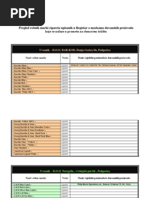 Pregled Robnih Marki Cigareta Cigarette Marque