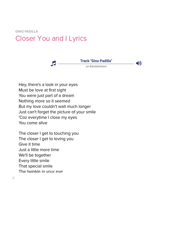 Closer You And I Lyrics Gino Padilla Recorded Music Pop Music